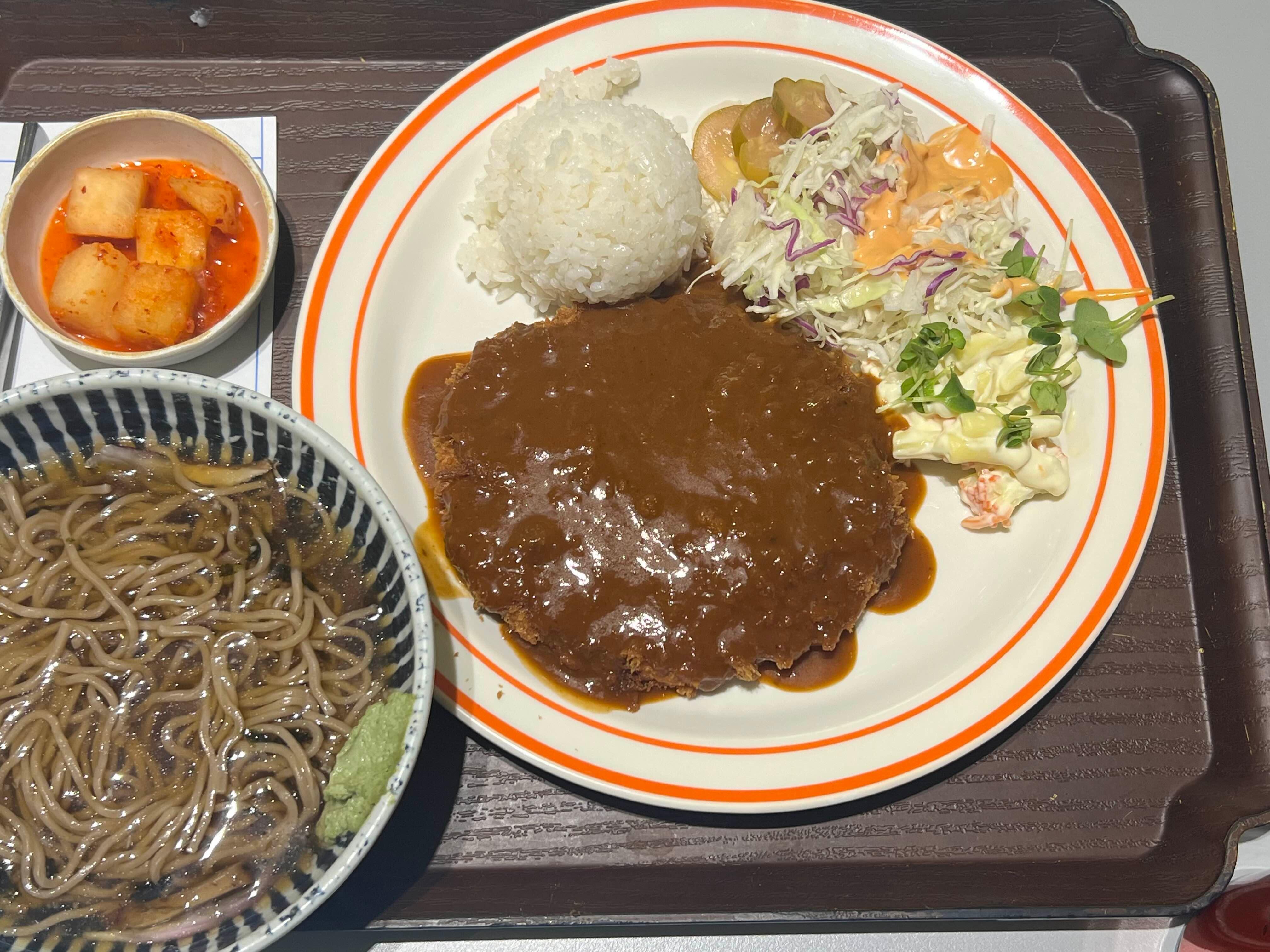 처음으로 나온 돈까스 1985의 돈까스+메밀 세트! 생각보다 돈까스와 메밀 양이 푸짐했다. 메밀은 미니로 나올 줄 알았는데 생각보다 큰 사이즈였고 배가 매우 고픈 상태였음에도 이걸 다 먹으니 배가 터질 것 같았다. 돈까스는 평범한 돈까스 맛인데 푸드코트인 것을 감안했을 때 맛있는 편이었다. 메밀도 시원하고 육수도 맛있었다.