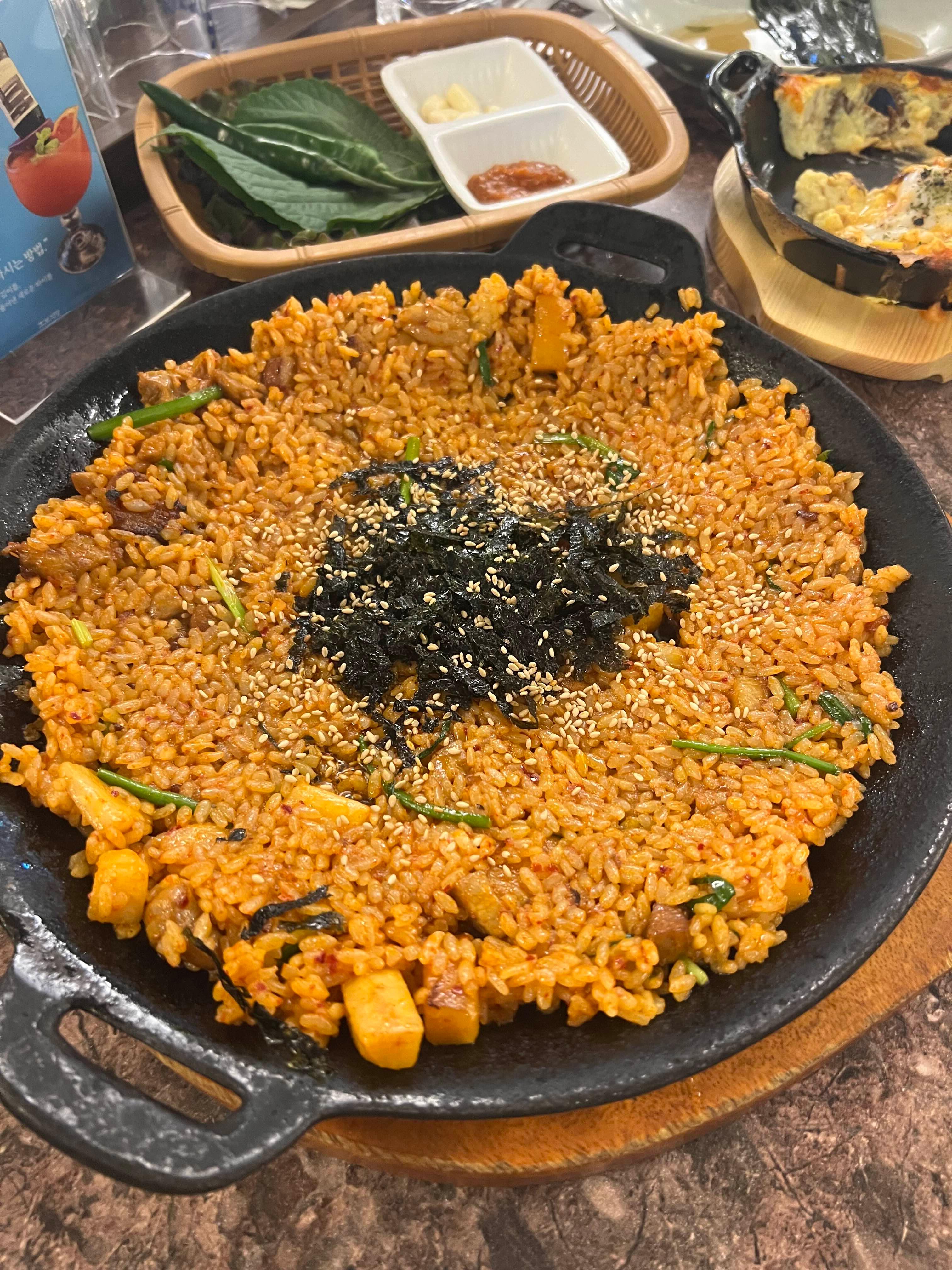 고기에 빠질 수 없는 물냉면과 볶음밥까지 시켜서 야무지게 먹어주었다. 볶음밥은 가격이 다른 것보다는 비싼 대신 양이 정말 많다. 1인분만 시키면 2인 이상의 양이 나온다. 중간중간 깍두기도 씹히고 갈비도 들어가 있어서 맛있었다.