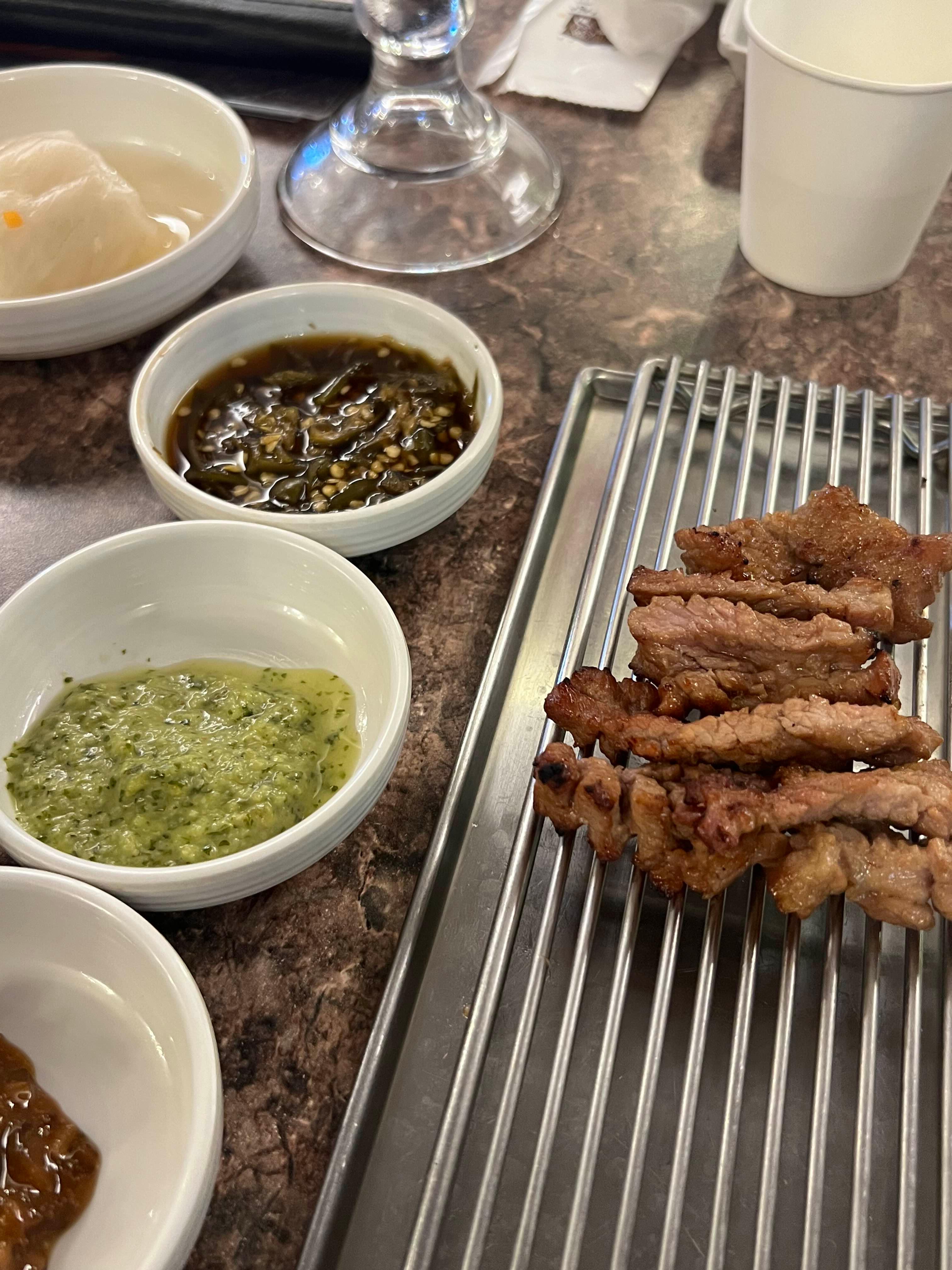 고기는 정말 입살녹이다. 양념도 잘 베어있어서 그냥 먹어도 맛있고 옆에 다양한 소스를 찍어먹어도 맛있다. 바질, 버섯 등 다양한 양념에 찍어먹을 수도 있다.