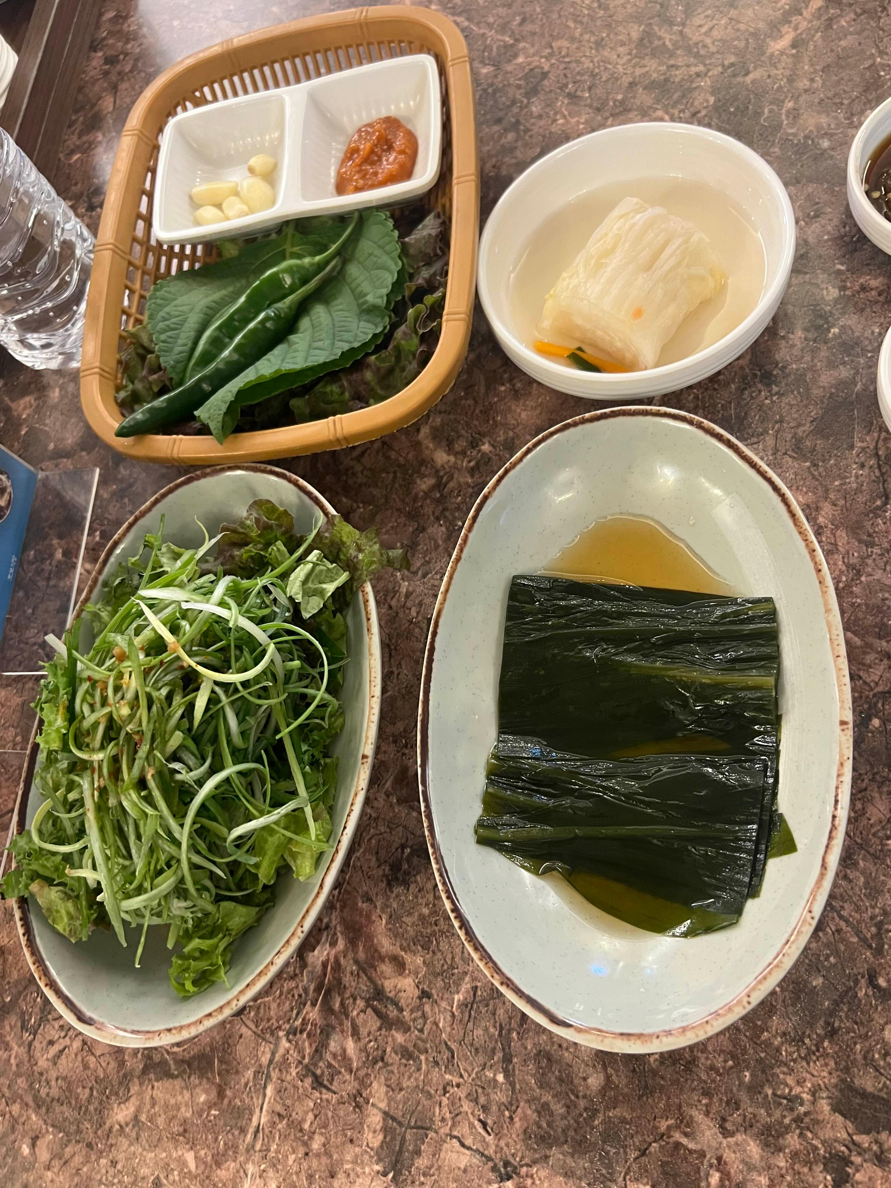 처음에 테이블에 이렇게 각종 야채와 소스를 세팅해주신다.