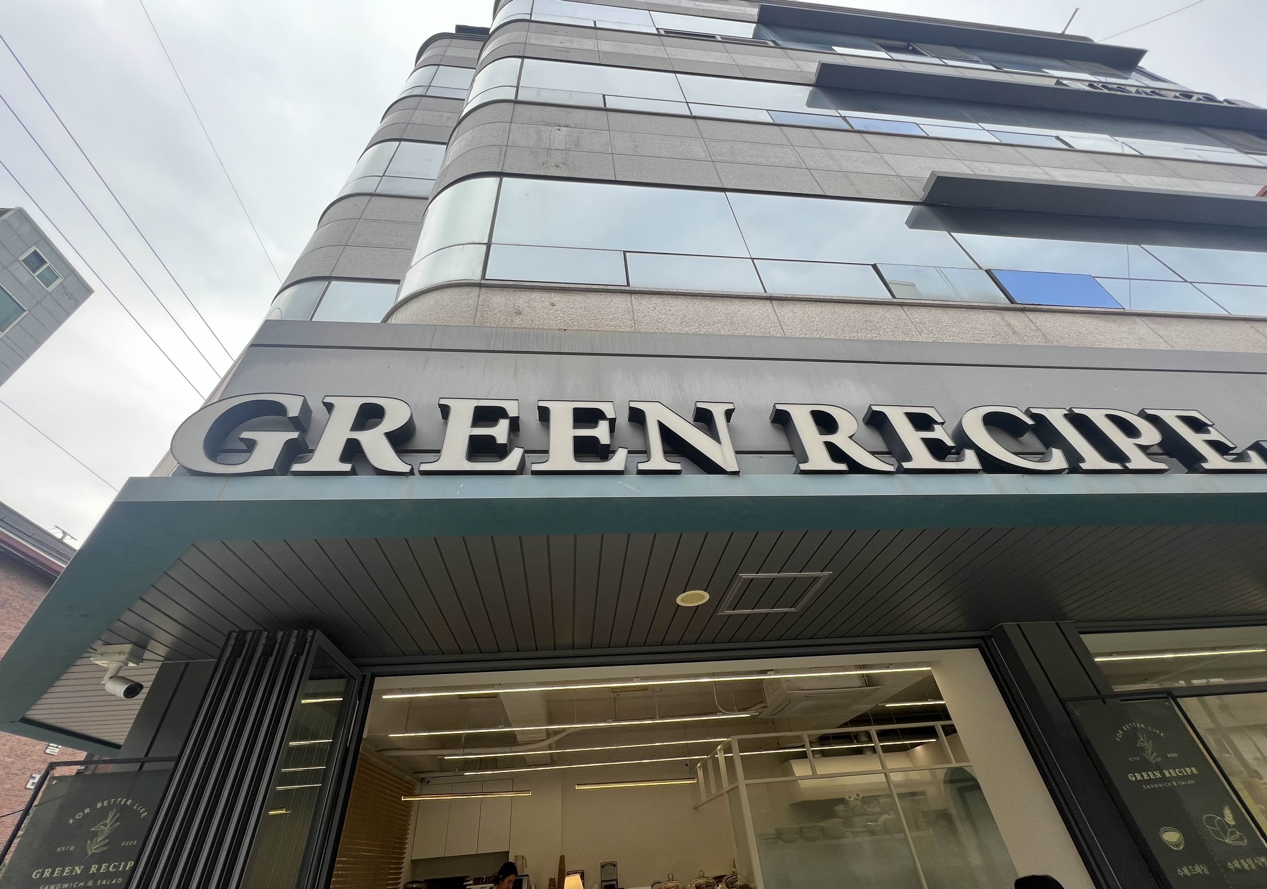 "그린레시피"는 신논현역 3번 출구 근처에 위치하고 있으며 주말은 11:00-20:00동안 영업, 이외 요일은 10:00-22:00동안 영업한다.