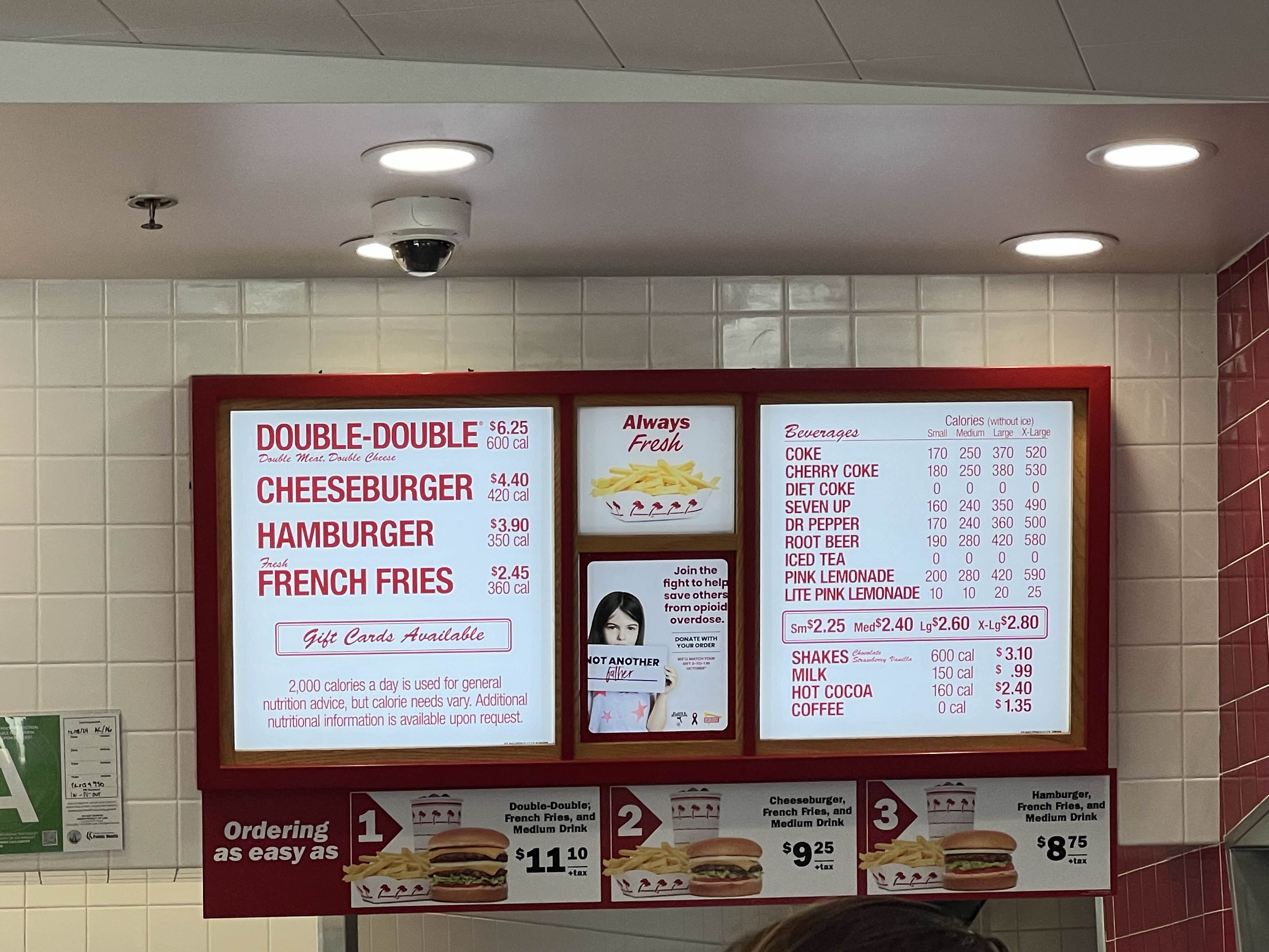 메뉴는 이렇다. 주로 한국인들이 가장 많이 시키는 조합은 Double-double과 animal style fry이다.