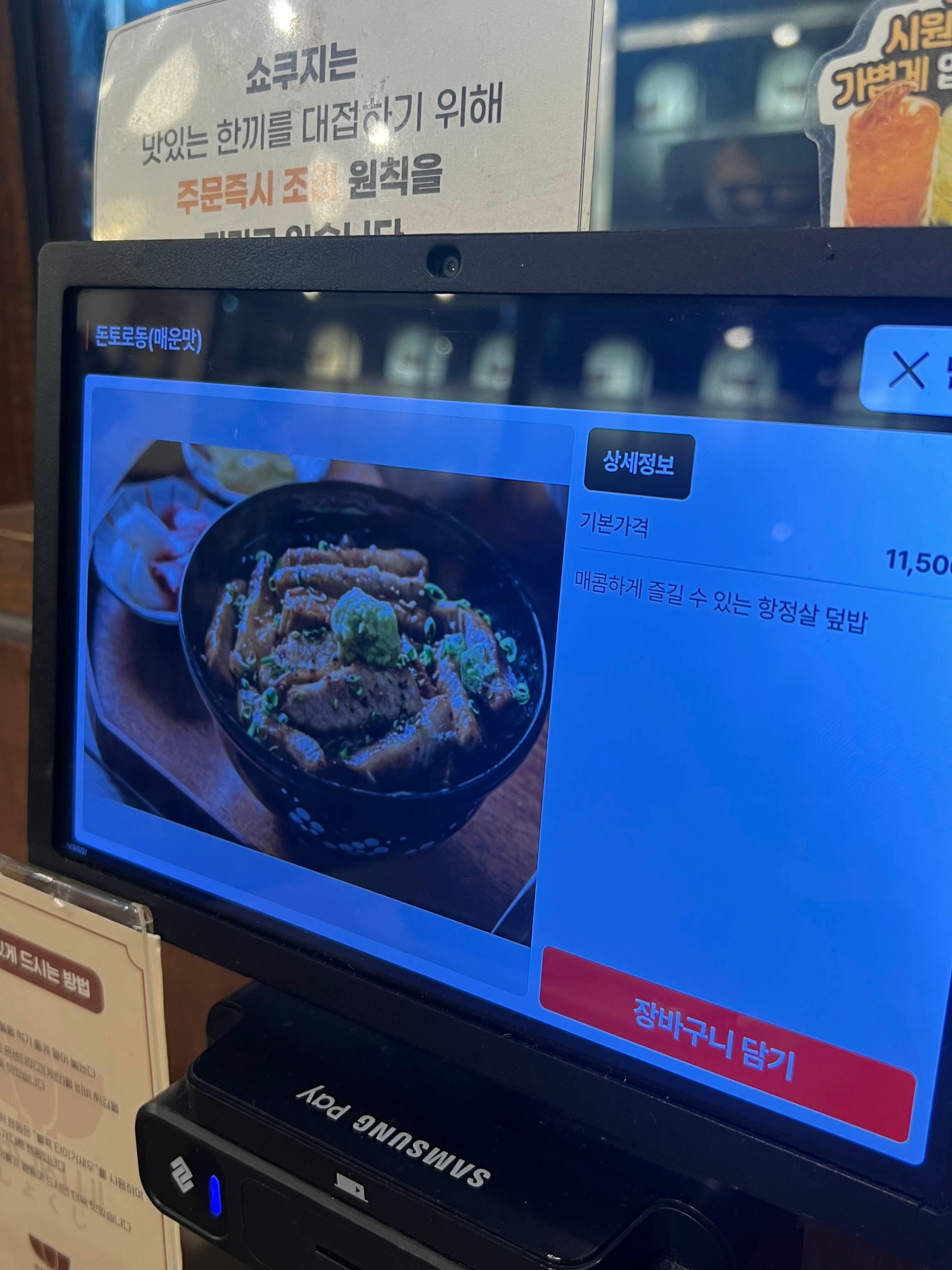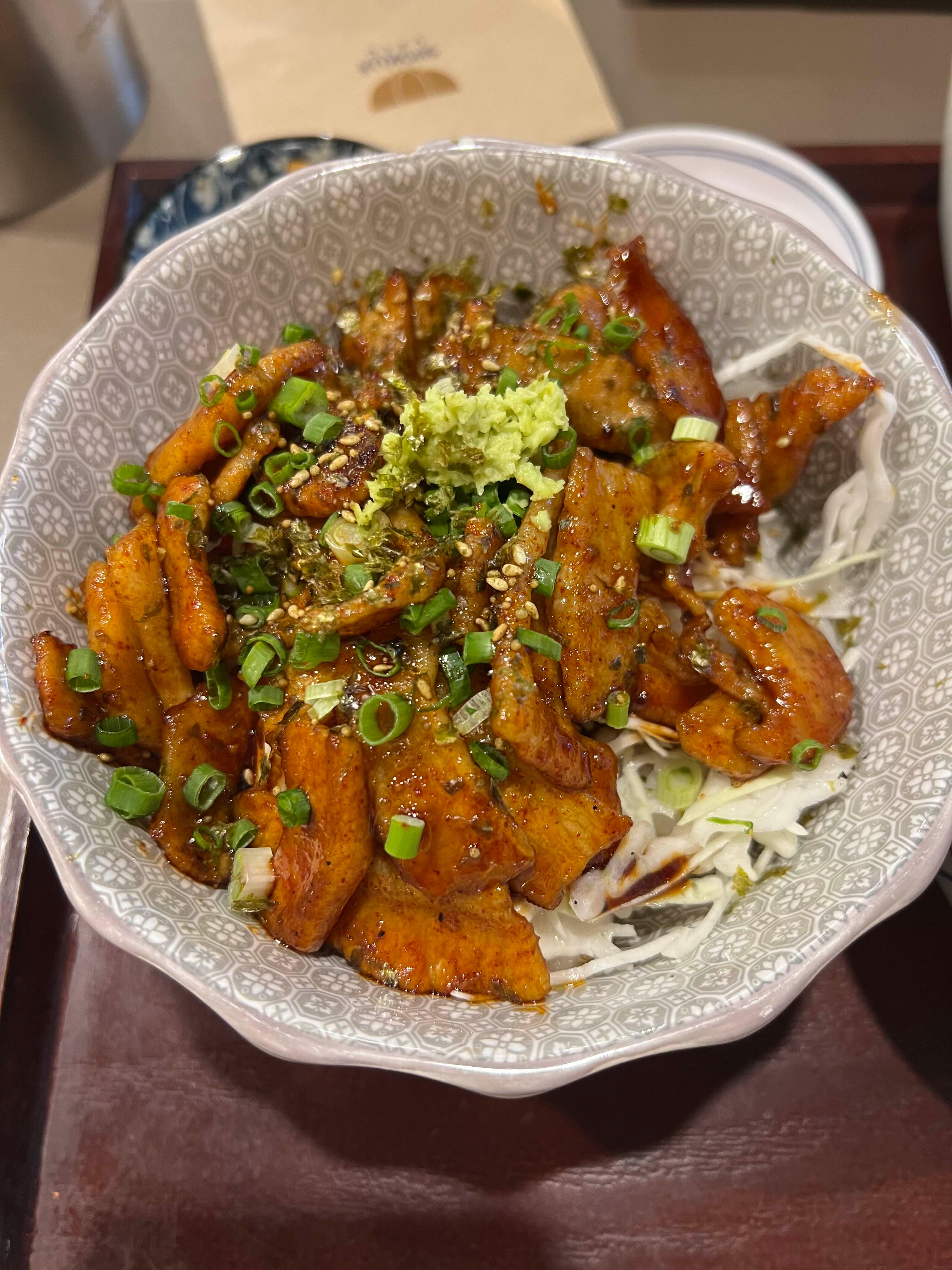 매콤 항정살 덮밥은 생각보다 아쉬웠다. 위에 항정살이 올라가는 덮밥인데 덮밥 특유의 촉촉함이 없고 매콤함이 덮밥과 완전 어울리지는 않는 느낌이었다.