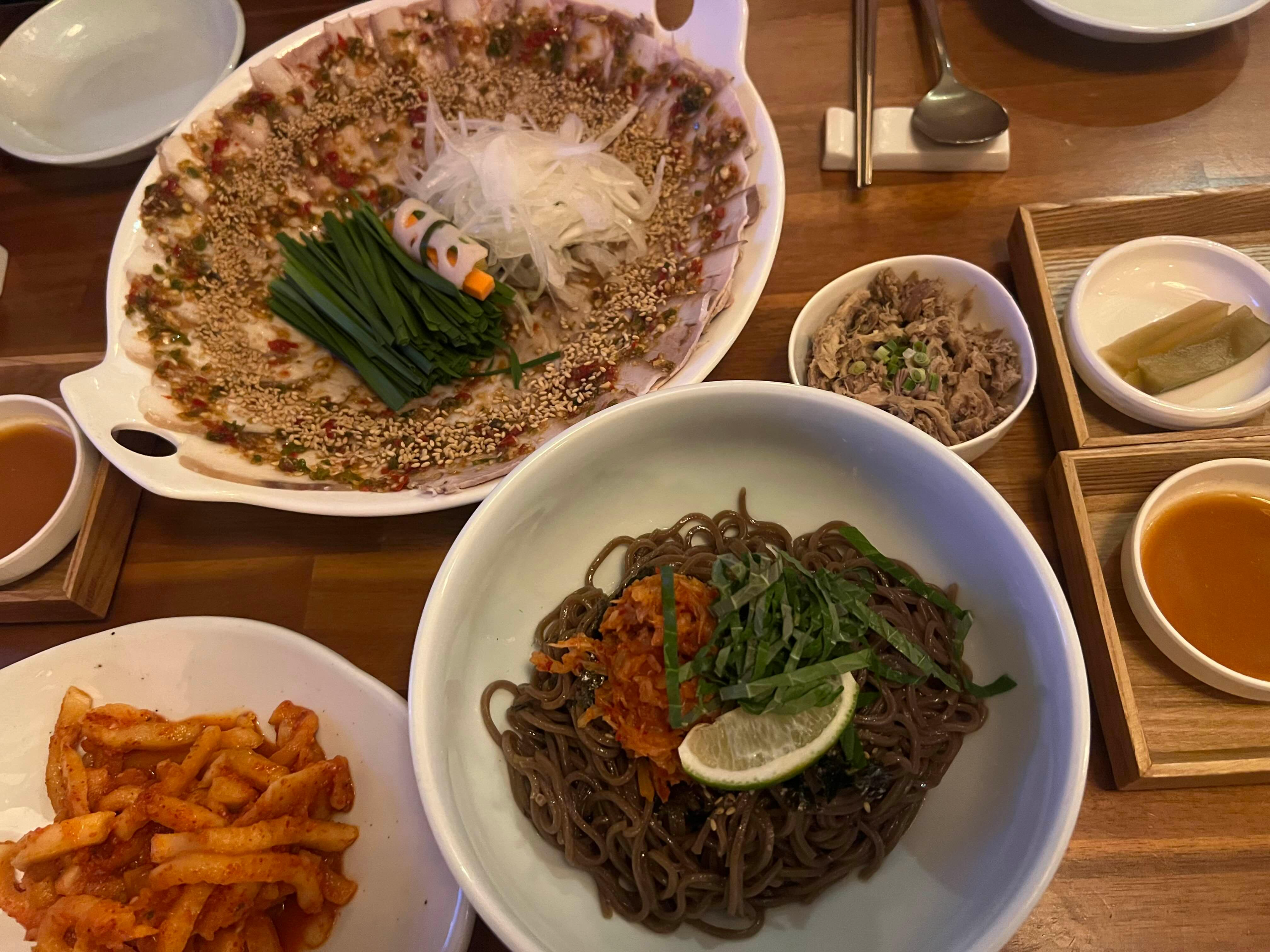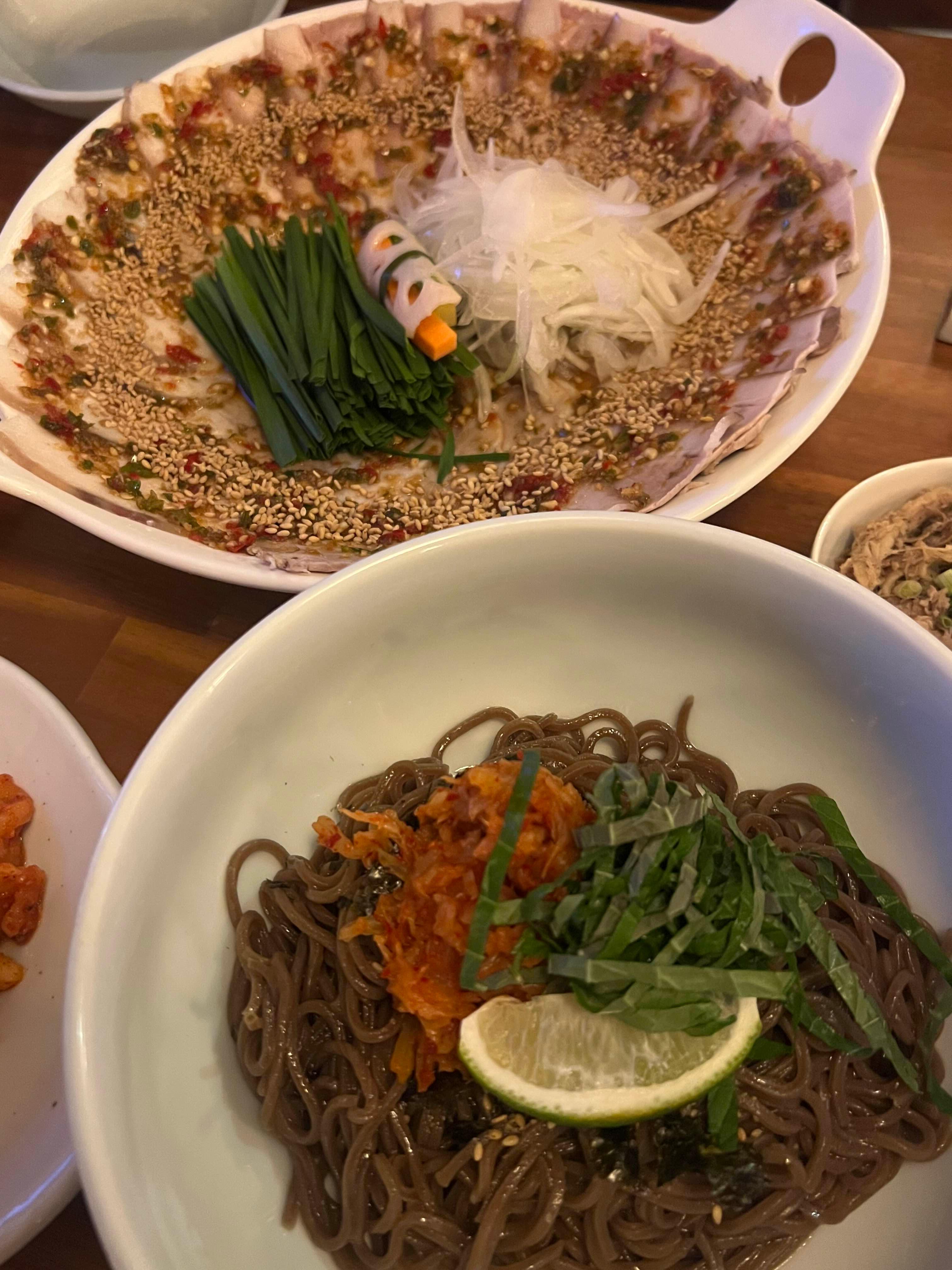 들기름메밀국수는 고소하고 고소하면서도 너무 밍밍하지 않게 고소한 간이 잘 되어 있어서 좋았다. 고급지면서도 맛을 놓치지 않은 메뉴였다.