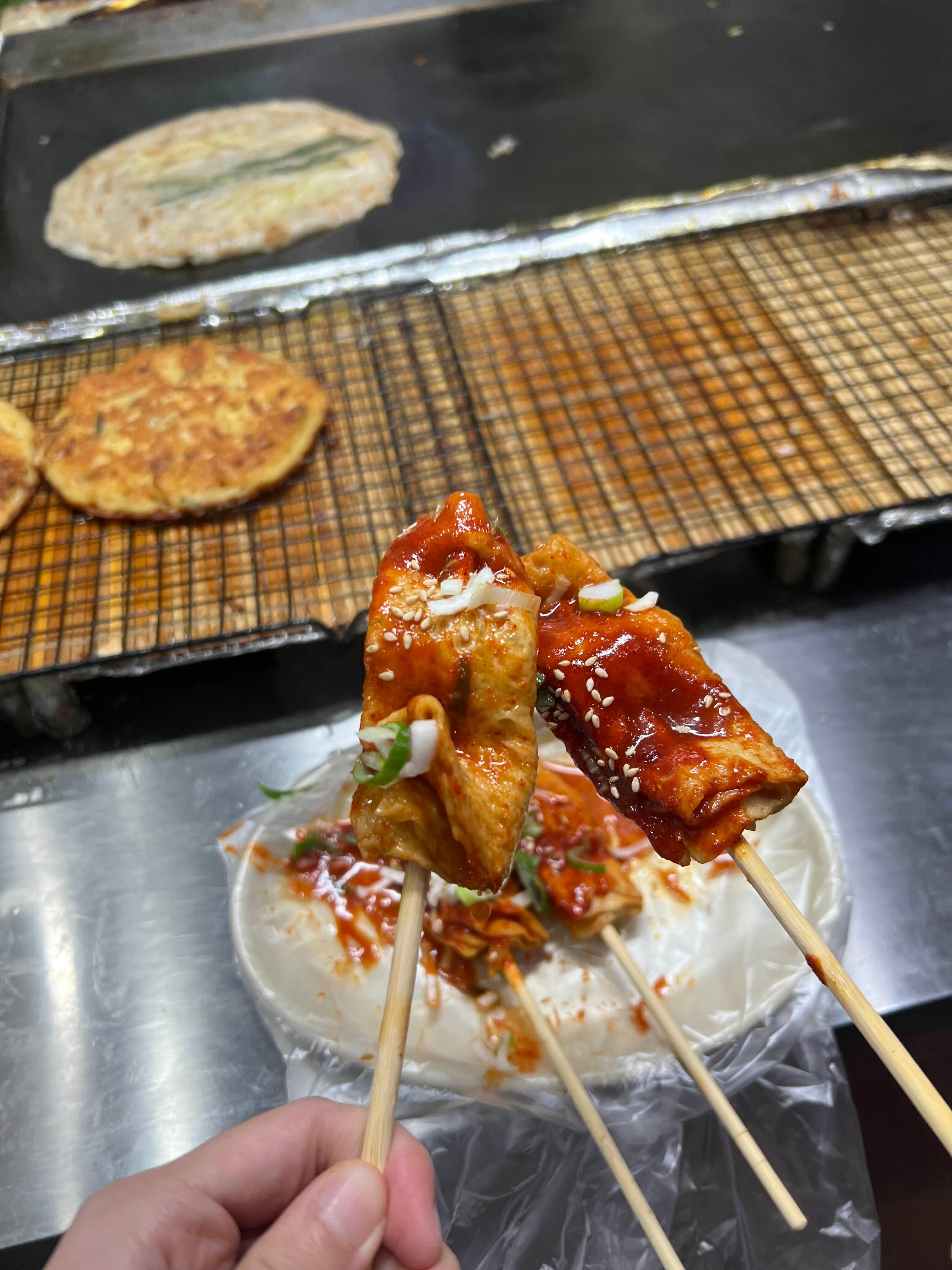 우리는 그 자리에서도 몇 개 먹고 나머지를 포장했는데 서서 먹는 재미도 쏠쏠하다. 시장의 분위기를 느낄 수 있고 포장해서 먹는 것보다 더 맛있었다. 빨간오뎅은 짭짤한 맛이다. 맛은 있지만 이렇게까지 줄 서 먹을 정도인가? 라는 생각은 들었다. 그렇게 매콤하지는 않아서 맵찔이들도 충분히 먹을 수 있는 맛이다.