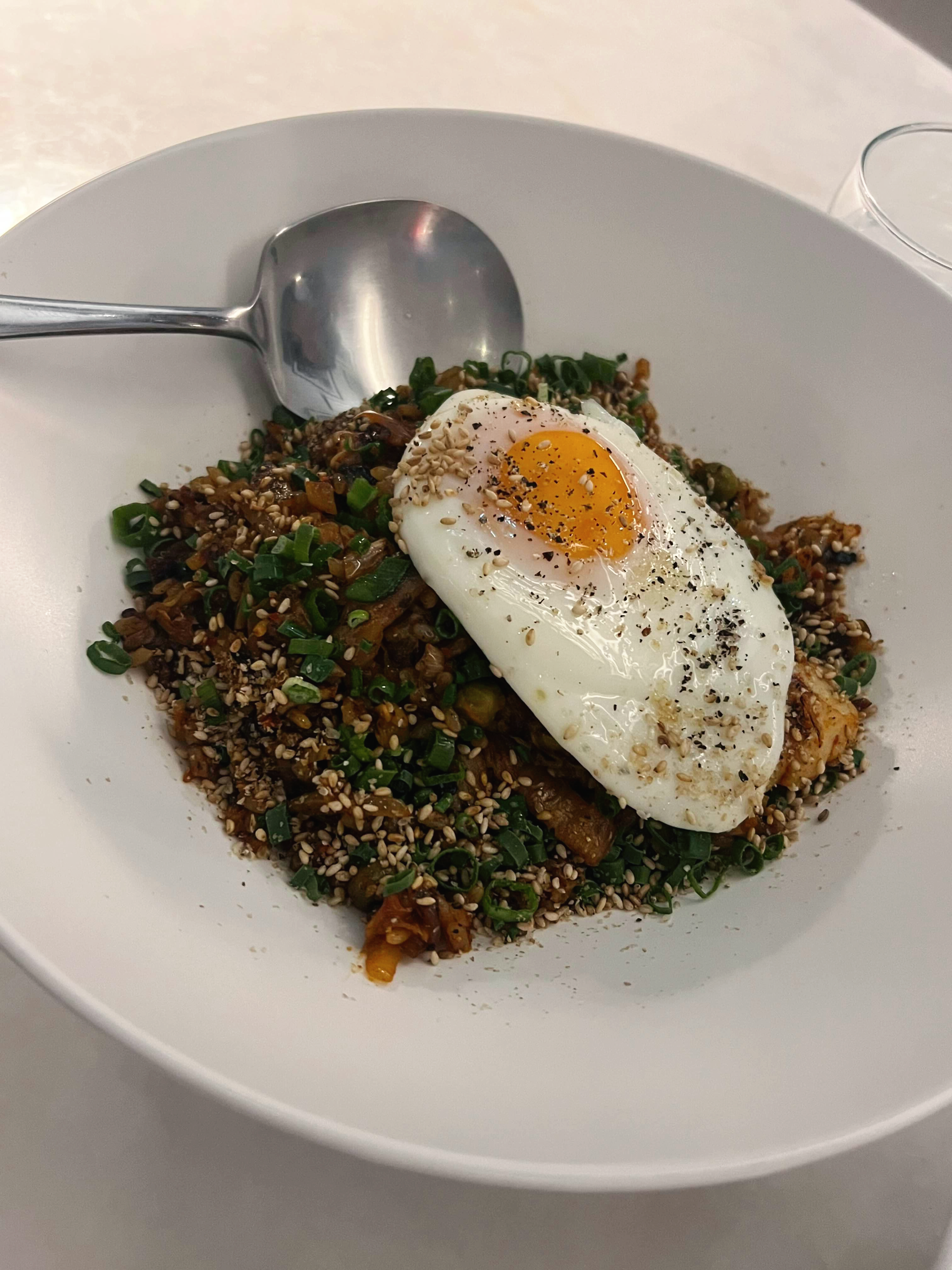 트러플 김치볶음밥은 생각보다 트러플 향이 거의 나지 않았다. 그래도 자극적이지도 않고 재료도 다양하게 들어 있어서 맛도 풍부했다. 위에 반숙으로 되어 있는 계란후라이를 갈라서 잘 섞어 먹으면 맛있다.