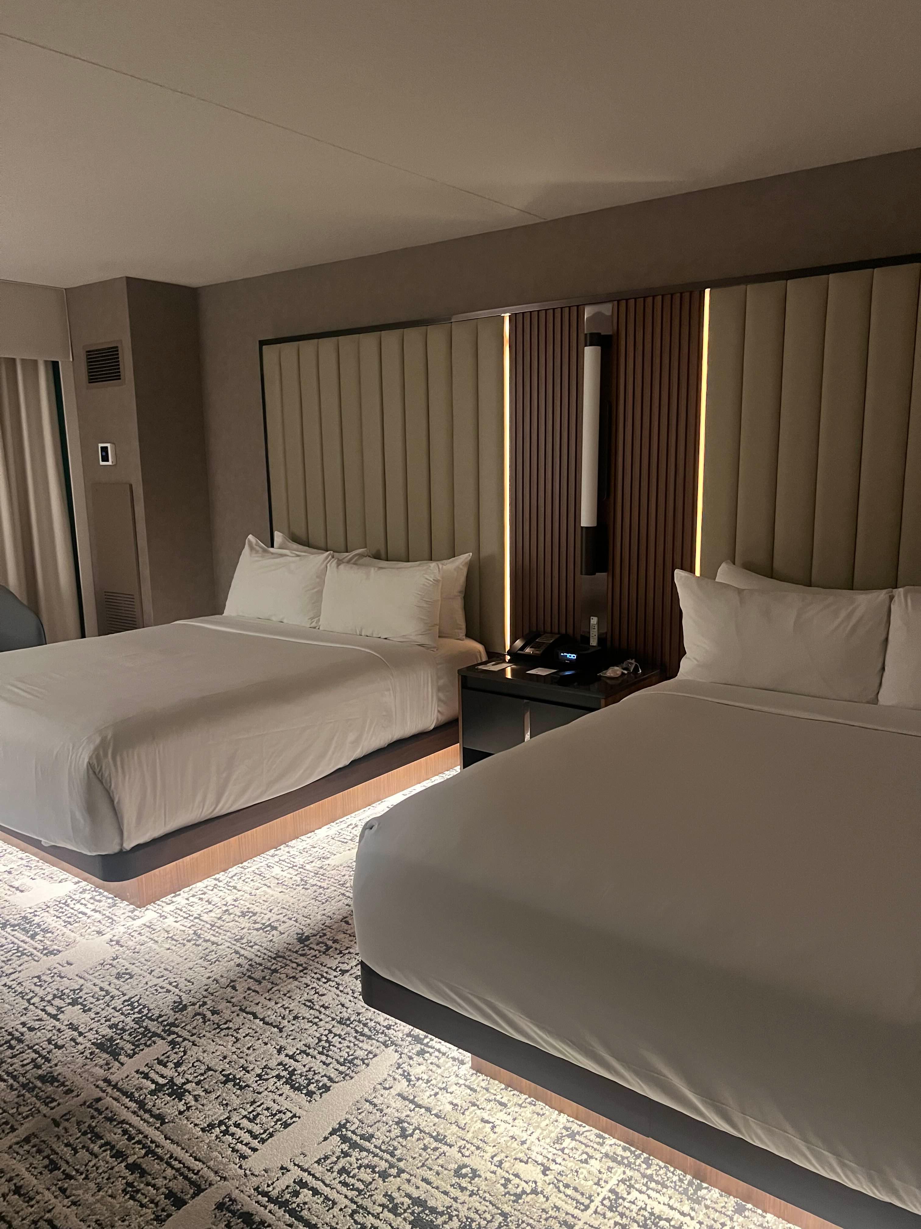특별히 VIP 룸을 받아서 룸 내부가 굉장히 넓었다. 캐리어를 펼 자리는 충분했고 뷰는 특별한게 없었다. 침대 아래까지 조명이 있어서 고급진 분위기였고, 그 조명까지 다 끌 수 있어서 잘 때는 문제가 없었다. 침대도 정말 컸고, 푹신했다. 무엇보다 청결해서 찝찝하지 않게 머물 수 있었다.