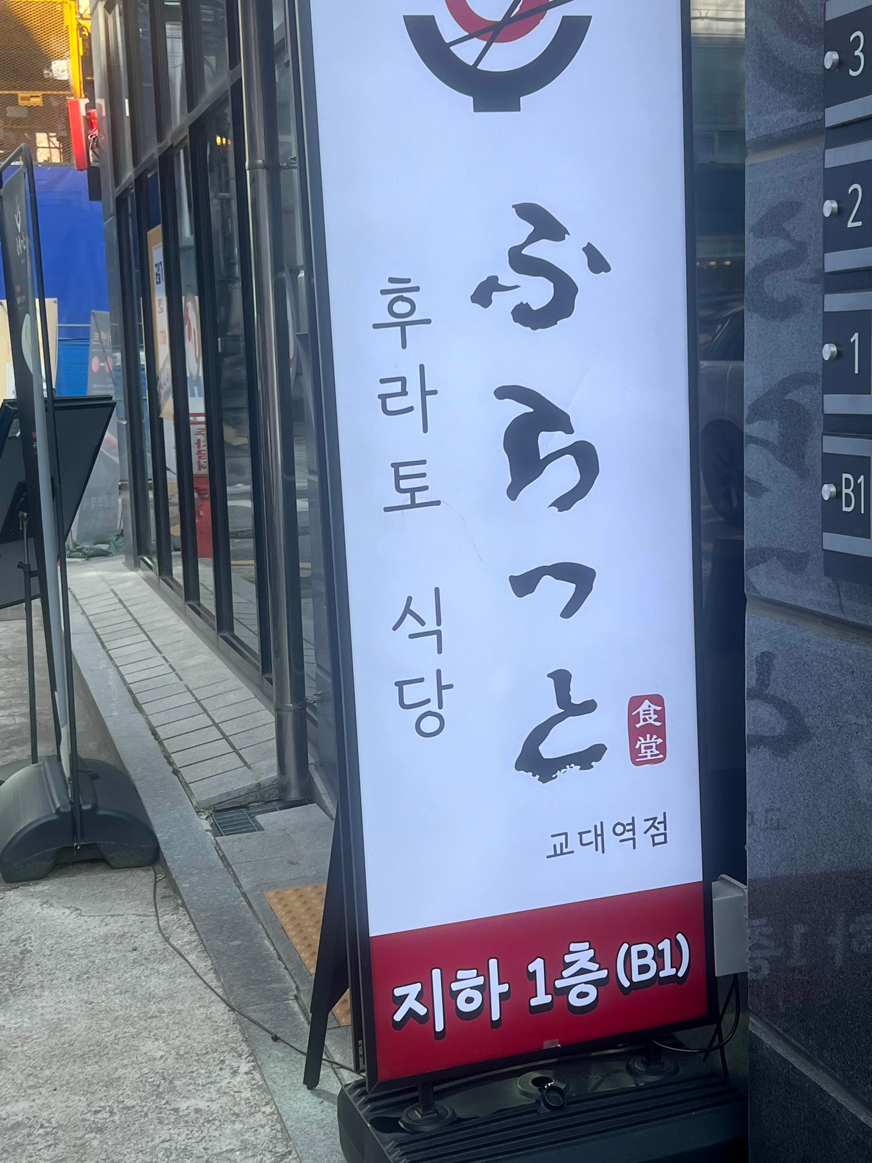 후라토식당은 다른 지점에 가도 대부분 지하 1층에 위치하고 있다. 교대역도 역시나 마찬가지!