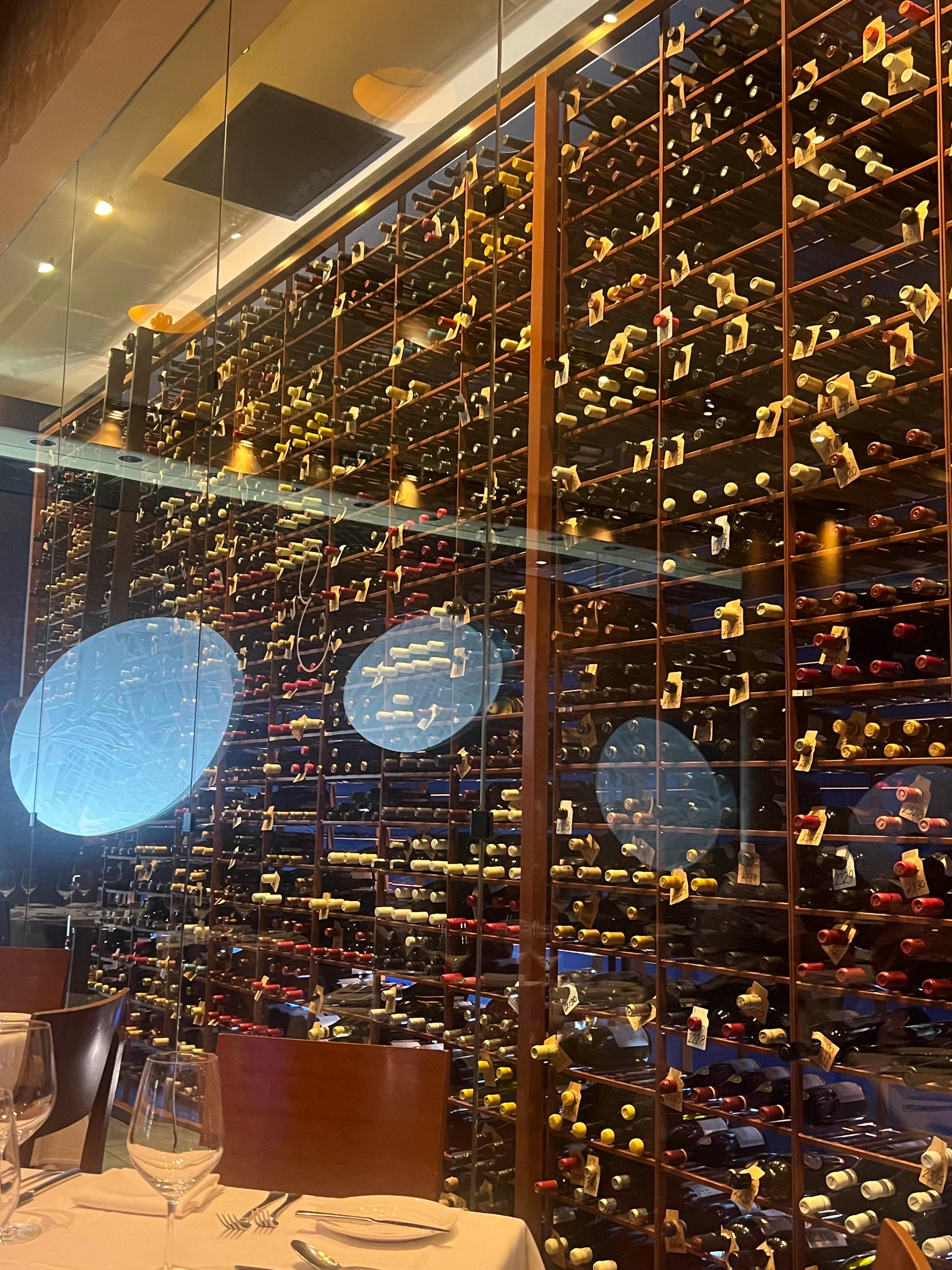 우리가 앉은 자리 뒤로는 이렇게 와인이 놓여져 있었는데 종류가 굉장히 다양하고 실제로 직원 분이 여기서 와인을 사다리를 통해 꺼내가는 것을 보아서 정말 신기했다.