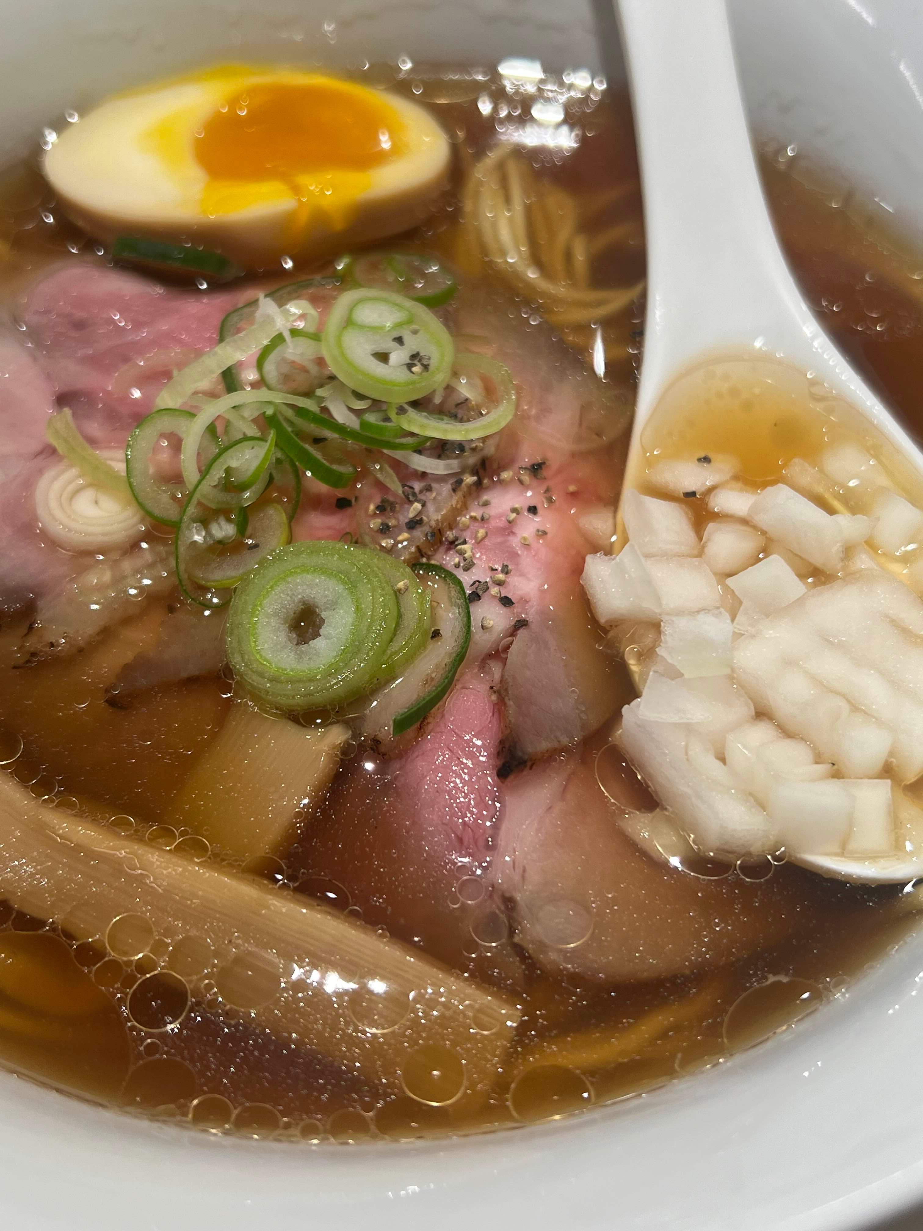 다음으로 주문한 것은 간장 소유라멘! 개인적으로는 조금 아쉬웠다. 맑은 닭 육수에 간장의 풍미를 더한 라멘인데 개인적으로 끝맛이 조금 애매했다. 담백한 맛을 좋아한다면 추천하지만 간장의 풍미가 확 느껴지지는 않아서 아쉬웠다.